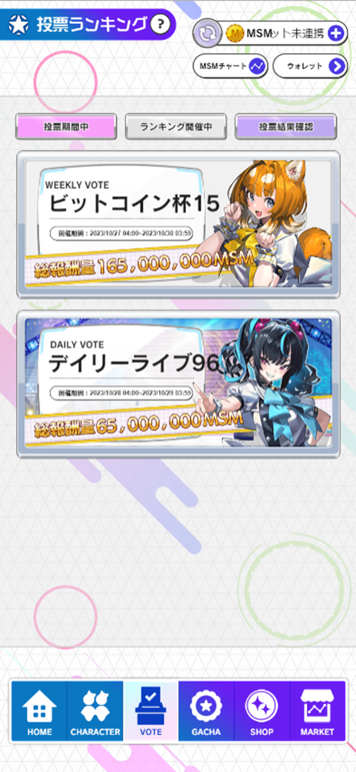 * Each price prediction race has a voting period during which CPs are accepted, and a period during which the fluctuation rate is tabulated. Clicking on a race during the voting period will take you to the voting page.