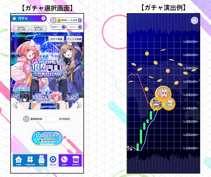 The following types of gachas are regularly offered. In addition, event gachas will be planned from time to time, in which NFTs with seasonal designs will be available.