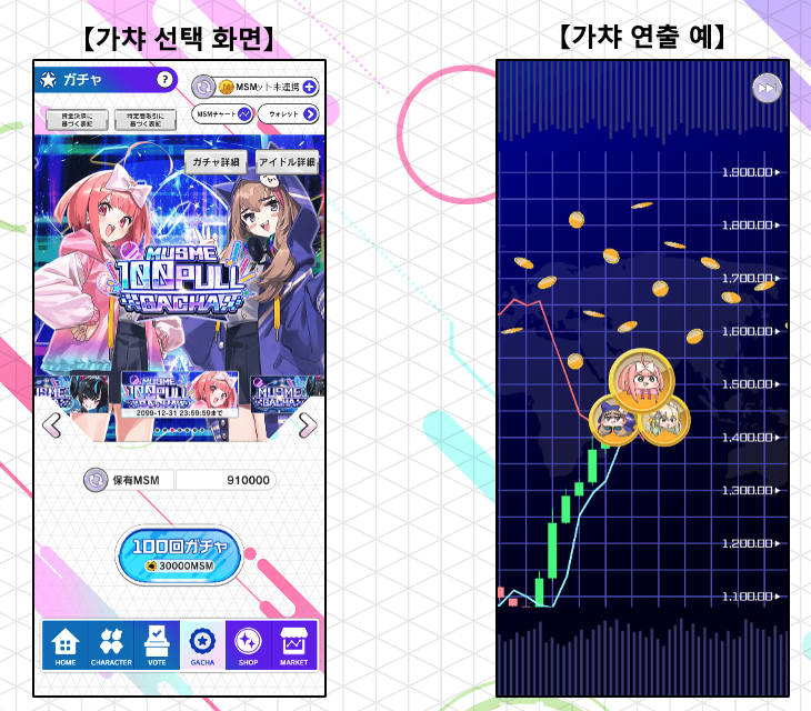 * 가챠에는 다음 2가지가 있습니다.  더불어 시즌 한정 이미지가 들어간 NFT 가챠 이벤트도 수시로 기획될 예정입니다.